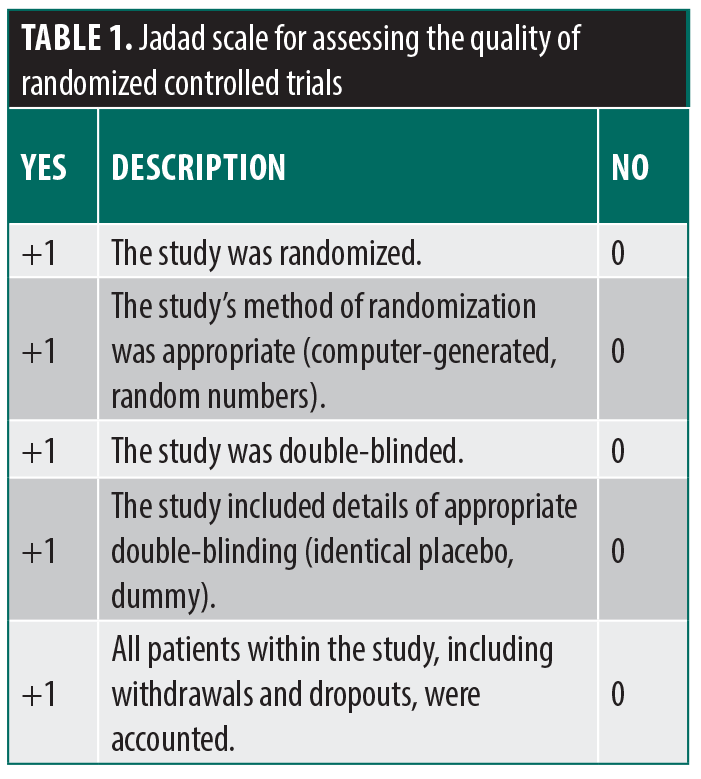 - Jadad A, Moore R, Carroll D, et al. Assessing the quality of reports of randomized clinical trials: is blinding necessary? Control Clin Trials. 1996;17(1):1-12.