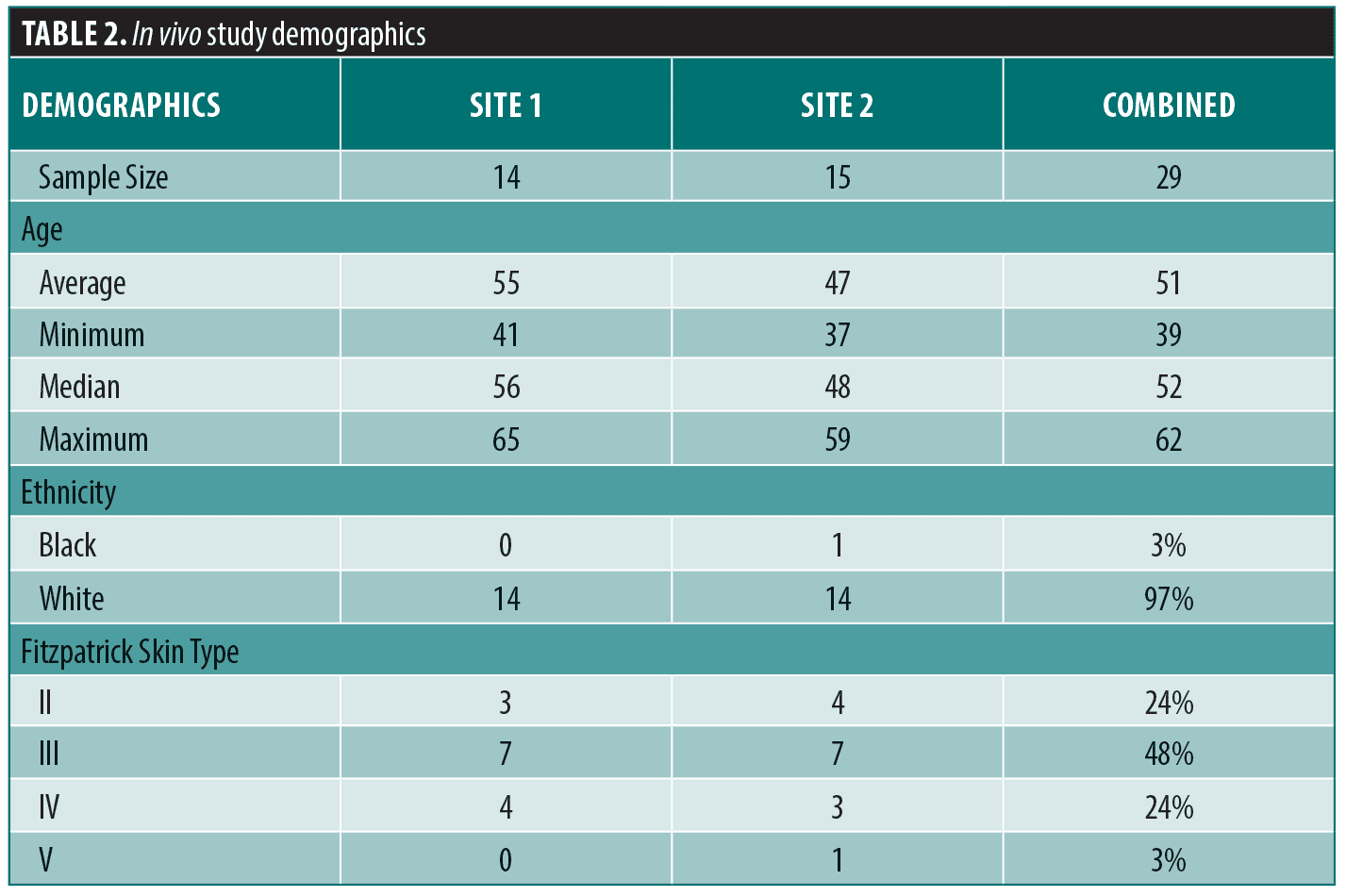 Limitations. Limitations of this study include a lack of randomization, blinding, and placebo or vehicle control. This study included a small number of subjects at each clinical study site, and subjects were predominately White with Fitzpatrick Skin Type III. Future studies incorporating a larger and more diverse population with a randomized, vehicle control study design will be insightful in understanding the efficacy and tolerability of this dual skincare regimen across a broad-patient population.