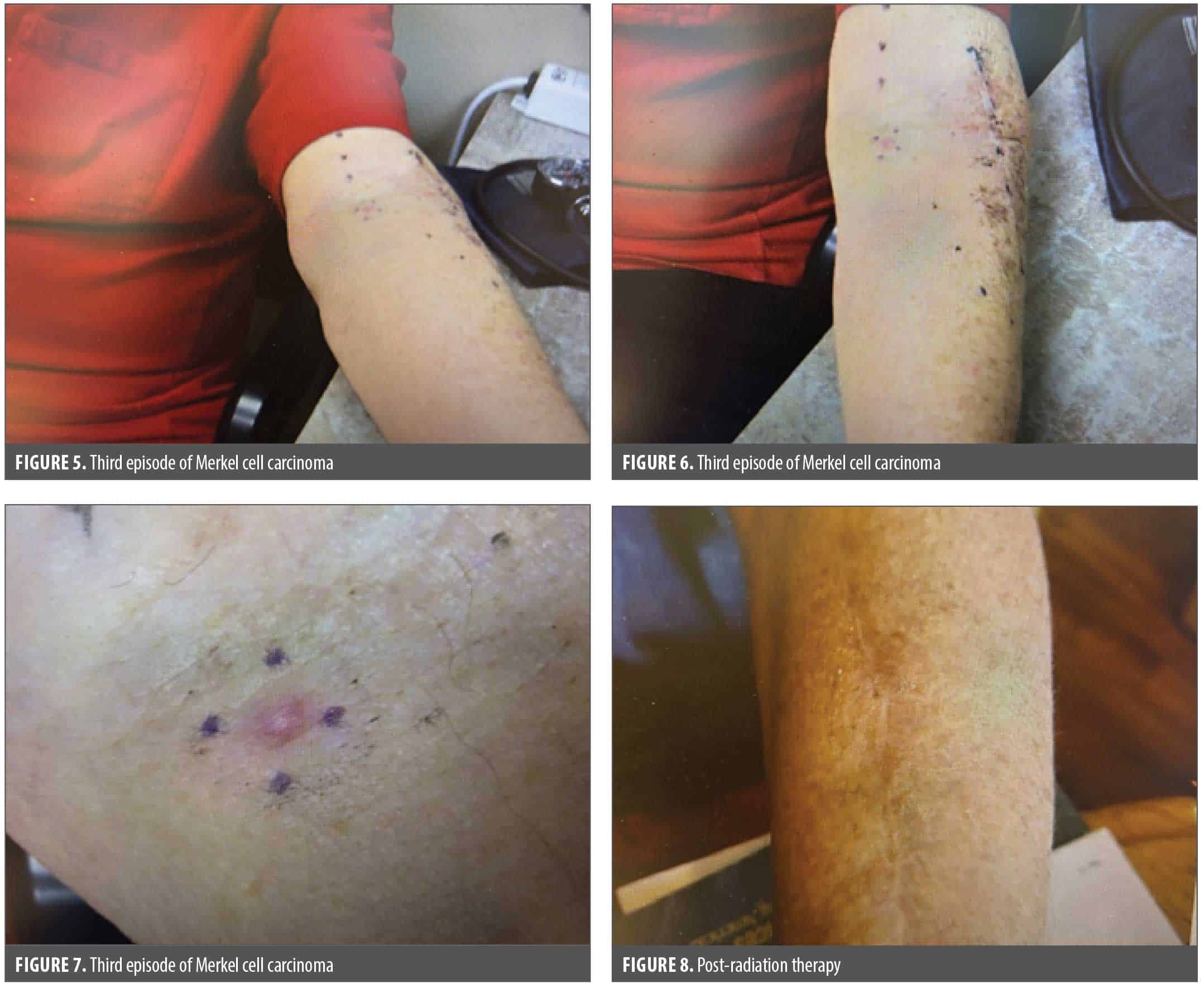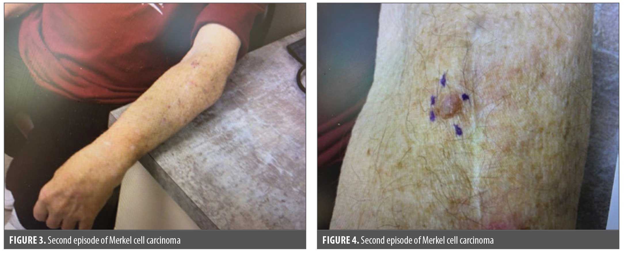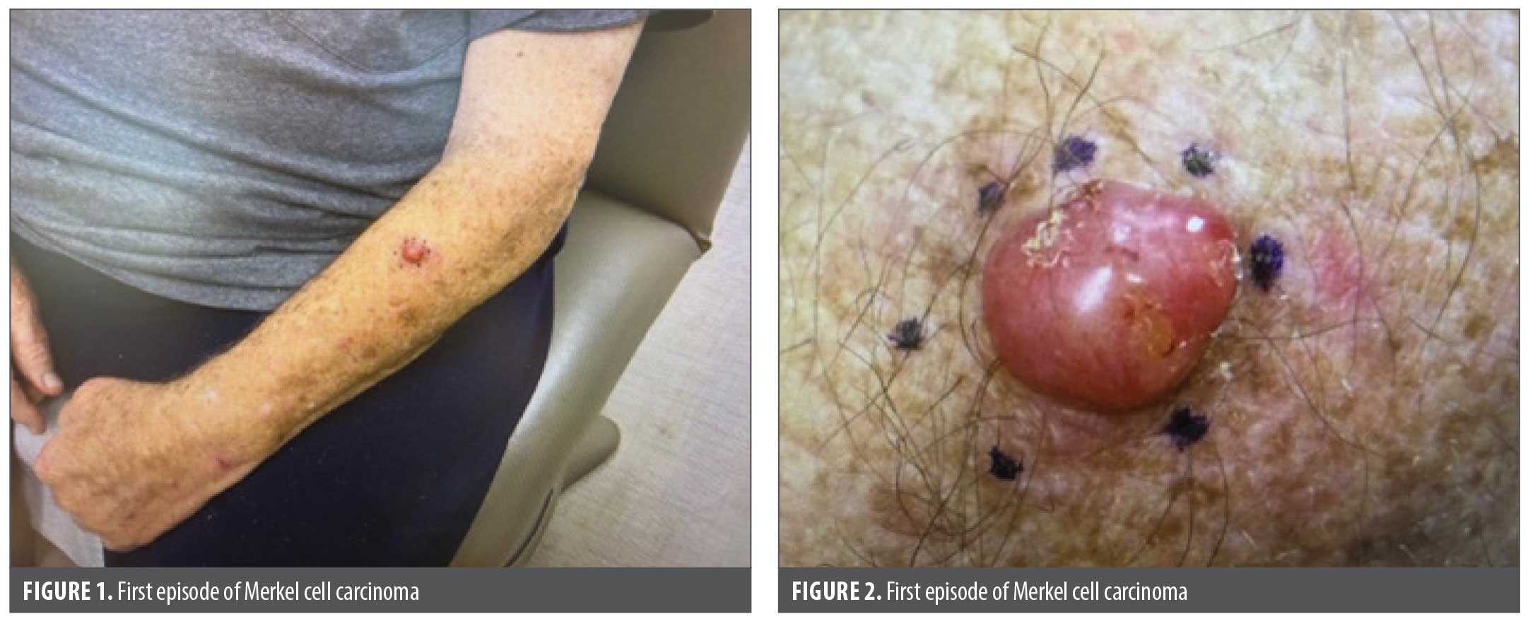 ABSTRACT: An 80-year-old White male individual presented with a rapidly growing lesion on his left forearm that had been increasing in size for the past 2 months. The patient resides in a northern rural state with limited access to dermatology care. The shave biopsy performed indicated Merkel cell carcinoma (MCC). The patient was referred to oncology and surgical oncology. The patient underwent a wide local excision, then adjuvant immunotherapy with pembrolizumab. The patient presented 2 years later with a rapidly growing lesion on the left forearm in the location of the prior surgical scar, and this was found to be recurrent MCC. Two months later, a new lesion developed approximately 7 cm from the most recent surgical incision; this was also found to be MCC. MCC is a rare form of skin cancer that is the most fatal, is more invasive than other types of skin cancer, and has a high rate of mortality. Diagnosis is confirmed by biopsy. Currently, no screening tests are in place regarding MCC or recurrent MCC. Treatment often involves wide local surgical excision and radiation therapy. Adjuvant immunotherapy and targeted therapies are promising treatment options and are continuing to evolve. Patients diagnosed with MCC in rural areas have been found to have decreased life expectancy compared to urban patients. Rural patients often encounter extraneous challenges involving travel, limited access to care, and financial hardship compared to urban patients. Treating rural patients can pose challenges to the clinician involving access to care barriers, nonadherence, patient inducement, and adhering to clinical guidelines to achieve the best outcome. Keywords: Merkel cell carcinoma, Merkel cell polyomavirus, positron emission tomography (PET) scan, sentinel lymph node biopsy, adjuvant immunotherapy, adjuvant chemotherapy, adjuvant radiation therapy, receptor tyrosine kinase inhibitors