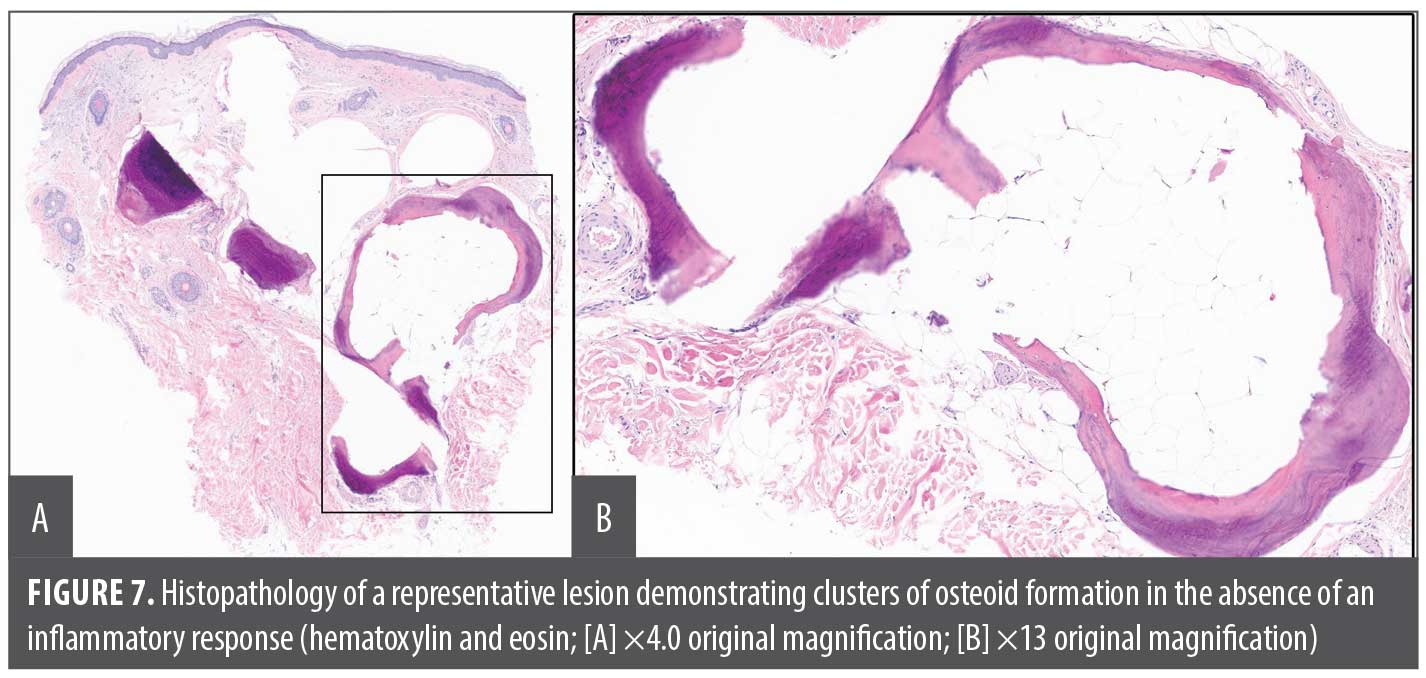 J Clin Aesthet Dermatol. 2020;13(11):28-31. - Oikarinen A, Tuomi ML, Kallionen M, Sandberg M, Väänänen K. A study of bone formation in osteoma cutis employing biochemical, histochemical and in situ hybridization techniques. Acta Derm Venereol. 1992;72(3):172-174.