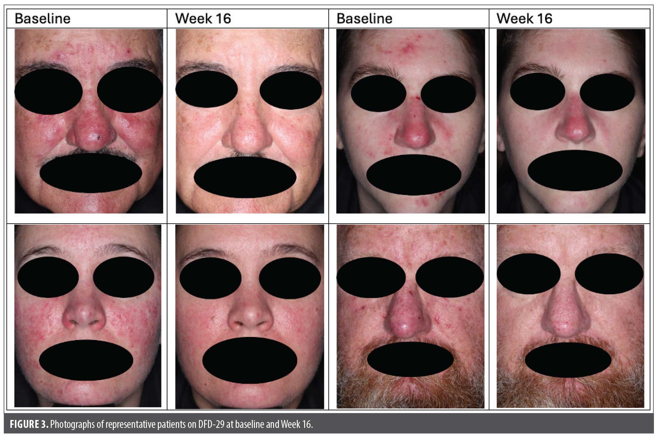 The MMRM analysis of overall LS mean changes (SE) in DLQI also showed superior improvements with DFD-29 vs placebo in both MVOR-1 (–3.6 [0.2] vs. –2.3 [0.3]; p<0.001) and MVOR-2 (–3.5 [0.3] vs. –1.7 [0.3]; p<0.001). At Week 16, LS mean changes (SE) in DLQI scores were –4.1 (0.3) with DFD-29 and –2.8 (0.4) in MVOR-1 (p=0.009) and –4.3 (0.3) with DFD-29 and –1.8 (0.4) with placebo in MVOR-2 (p<0.001).