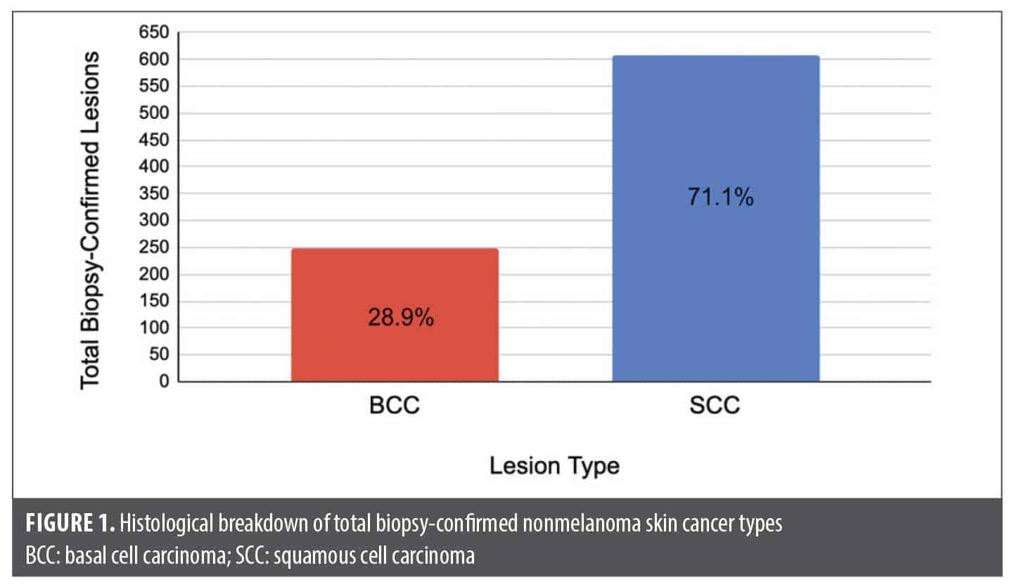 Nonmelanoma skin cancer (NMSC) is the most prevalent form of cancer in the United States, with an estimated 5.4 million cases diagnosed annually.1 Ultraviolet (UV) radiation exposure is a well-established risk factor, associated with approximately 90% of NMSCs.2 Because of its location as one of the most southernmost states in the United States, Florida has one of the highest incidences of skin cancer in the world, ranking second in the nation for new cases.3 One study that analyzed lesions from 65 dermatology centers documented rates that suggest South Florida may have the highest incidence rate of NMSC globally.4 Traditionally, basal cell carcinoma (BCC) has been considered the most common form of NMSC by number of diagnoses, followed by squamous cell carcinoma (SCC), with an approximate ratio of 70:30.5 This long-held belief has shaped dermatologic education and clinical practice for decades. However, recent studies have begun to challenge this conventional representation, particularly in regions with high UV exposure like South Florida.